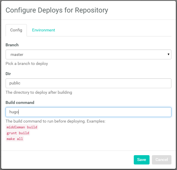 Simply create a new site in Netlify’s dashboard. In our post about integrating Snipcart with Hugo, we suggest you to link your site repository directly to Netlify. This is the easiest way to do it. You can either use GitHub or Bitbucket for that. Once your site is linked, fill the setup form like this: