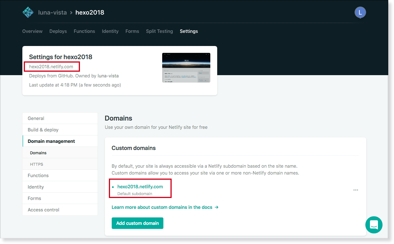 There, that's better. Now you can add your custom domain, and your site will be live for your adoring public to view. Congratulations, and thanks for using Netlify!