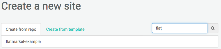 Now that you’ve connected Netlify and GitHub, you can see a list of your Git repos. There’s the flatmarket-example repo we just pushed to GitHub. Let’s select it.