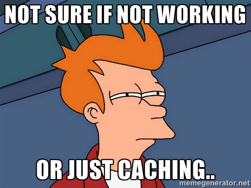 We have a network of nodes that make up our CDN. They cache the results of a request as close to a user as possible. That means that the next request for your site is like Greased Lightning. Not your next request, anyone’s next request. However, all this performance comes at a cost — updating the version is difficult.