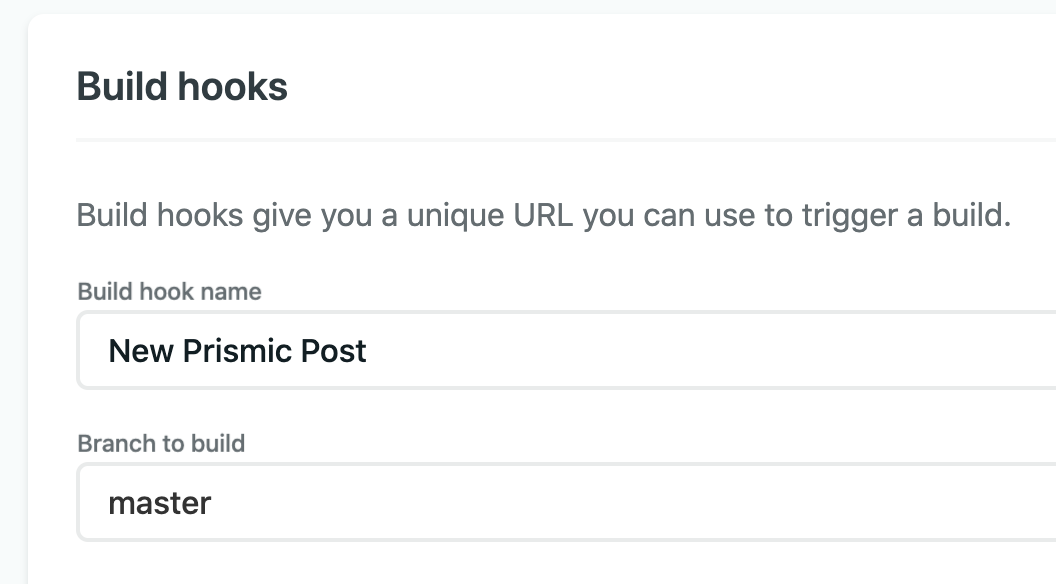 Copy the URL the UI gives you. We’re going to provide Prismic with this, so whenever you make a new post, it will trigger a site rebuild!
