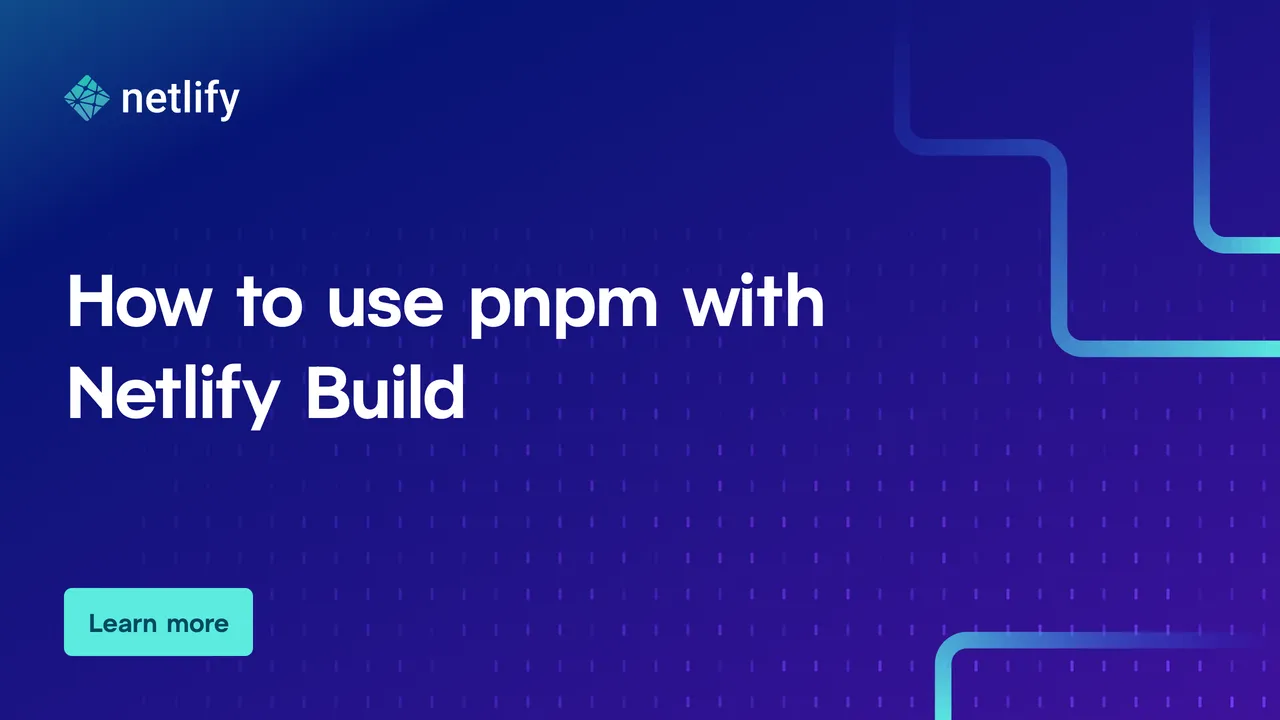 Netlify has out of the box support for pnpm, the performant Node Package Manager known for saving disk space.