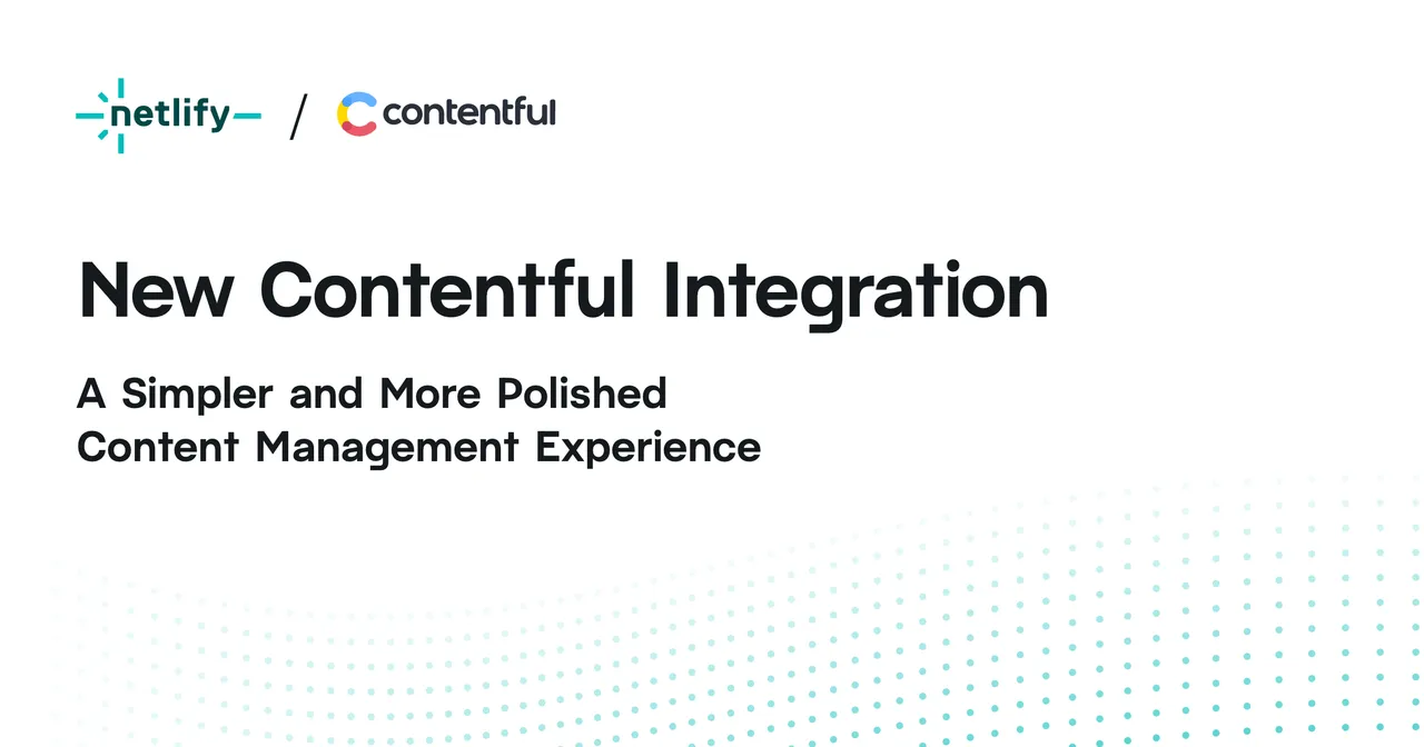 Netlify’s latest integration with Contentful provides developers with a simpler install flow, access to the Netlify UI within the Contentful space, and a preview functionality to visualize content updates more quickly.
